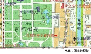 この地図は、わが国の代表的な歴史・文化・観光都市である京都の市街地及びその周辺地域を対象として、 2万5千分1地形図「京都東北部」、「京都東南部」、「京都西北部」「京都西南部」、「宇治」、「淀」 を使用して作成した表図と、京の観光案内・京のおもな年中行事等を紹介した裏図とで構成したもので、 文化・教育・刊行などの分野で広く活用されることを目的としています。日本語版と英語版があります。